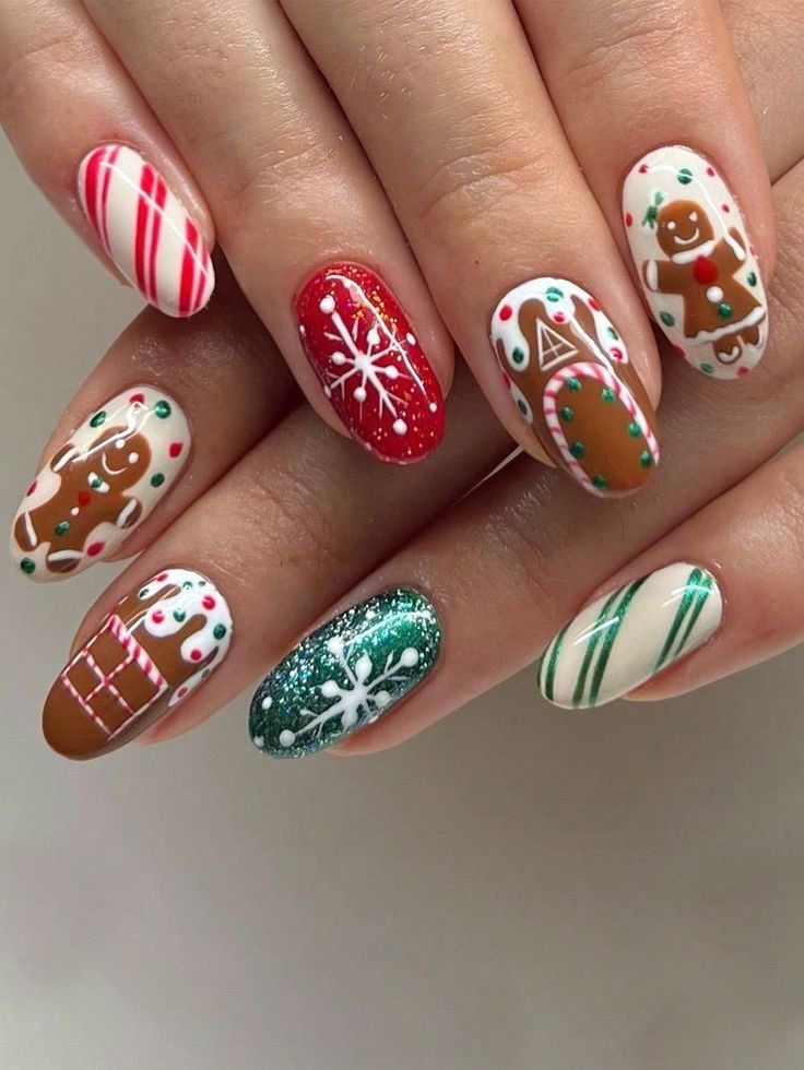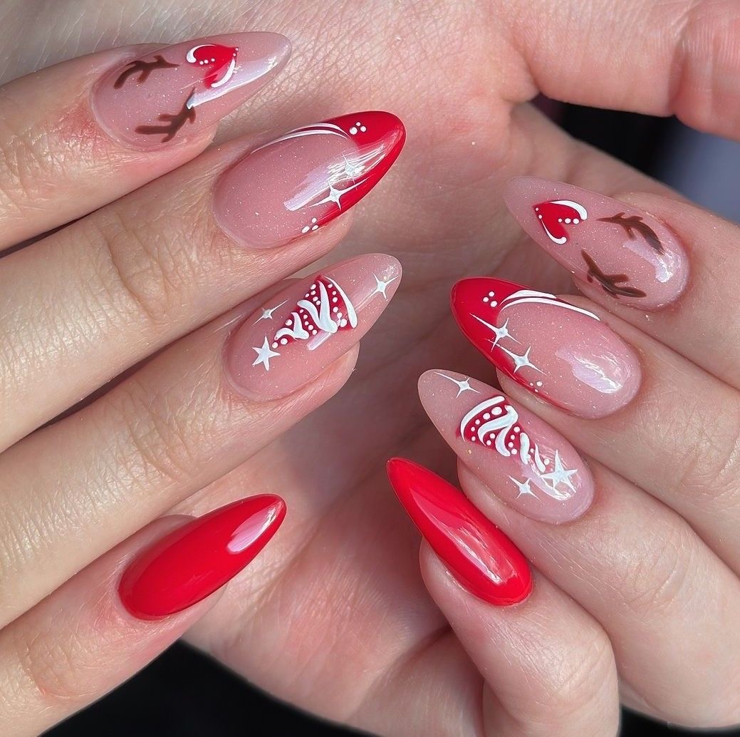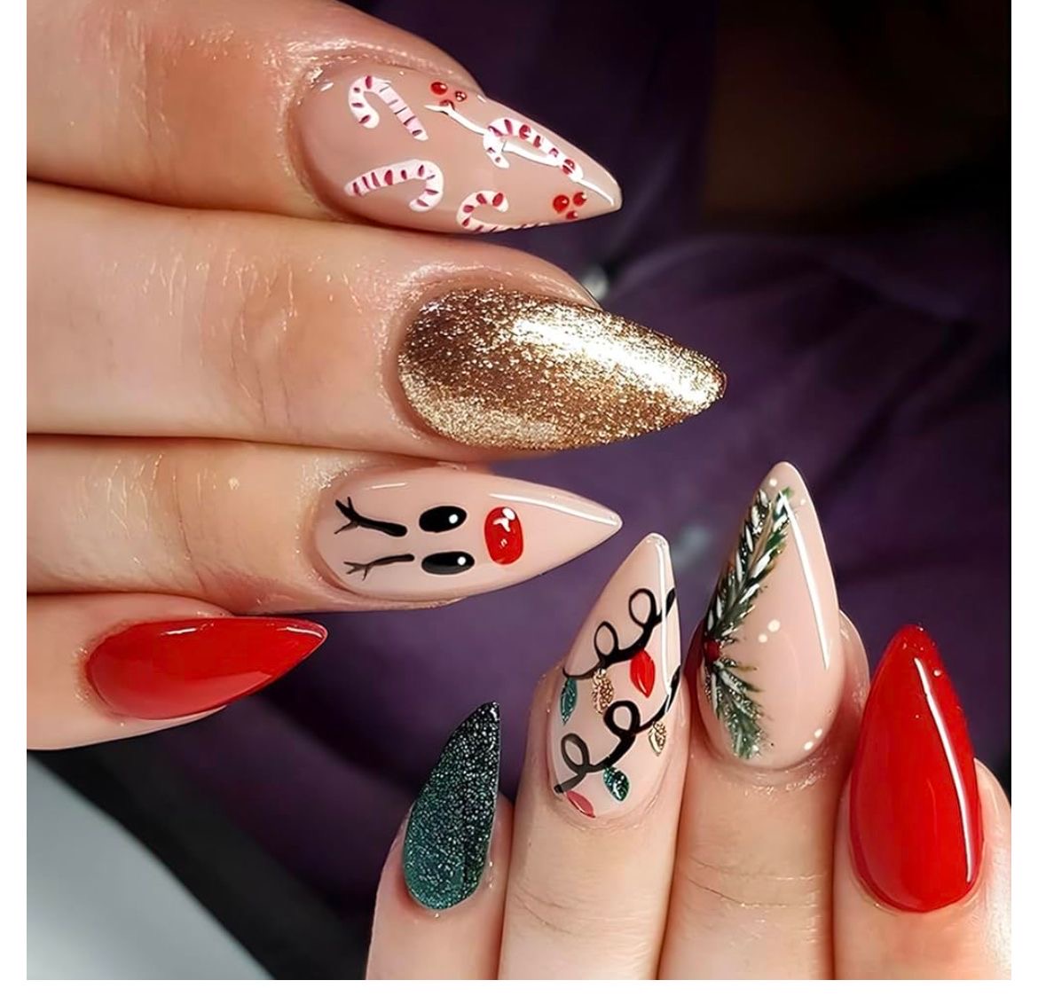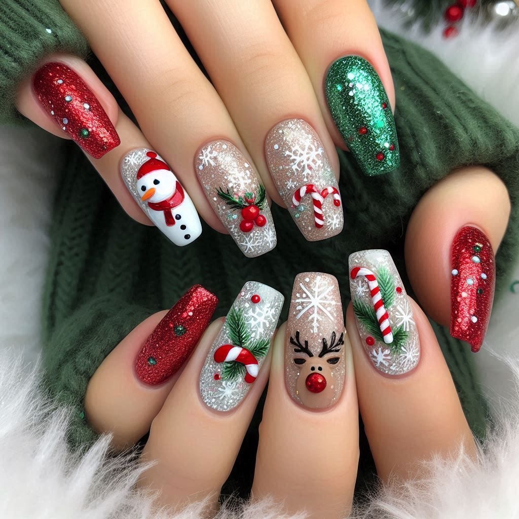 Los tonos rojos, verdes, blanco, dorado y plateado dominan esta temporada. Combinan espíritu navideño con sofisticación para cualquier diseño de uñas.